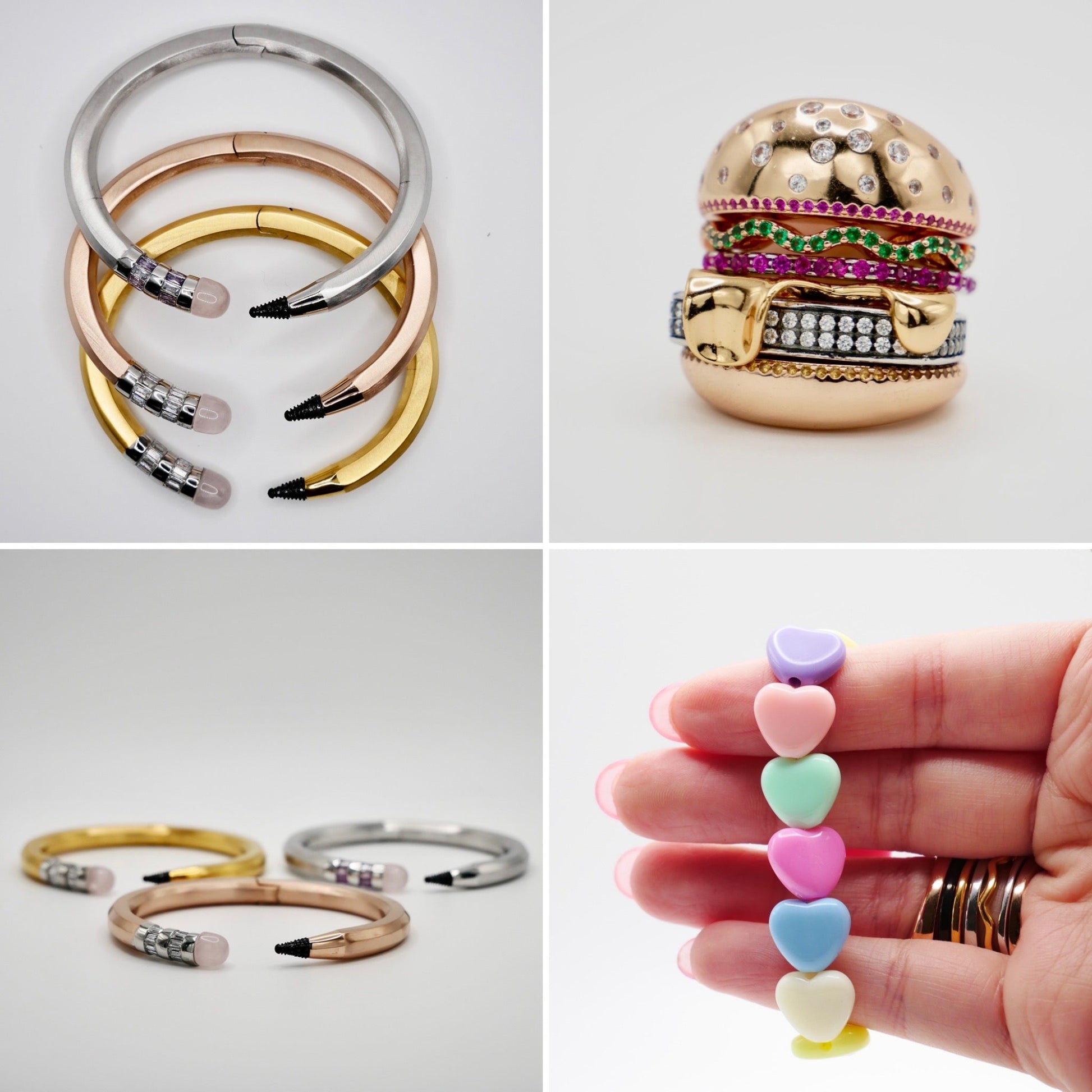 Meet the ultimate statement pairing: The Pencil & Burger Duo — a curated gift set that celebrates creativity, humor, and effortless style. This playful set includes two of our most-loved designs and a complimentary rainbow heart bracelet: