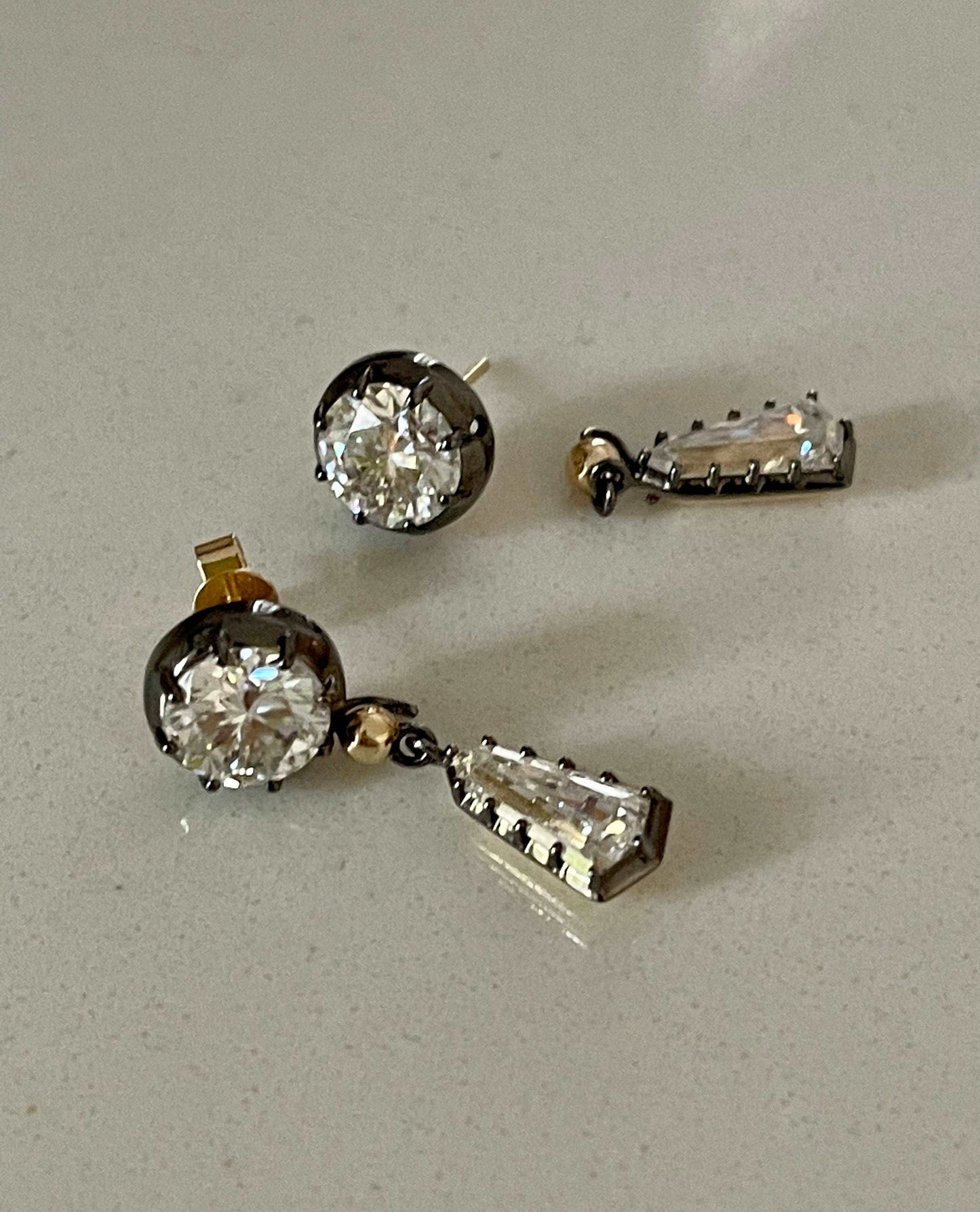 6.6 Ct Multi-Shape Blackened Georgian Victorian 14K Gold Detachable Earrings
