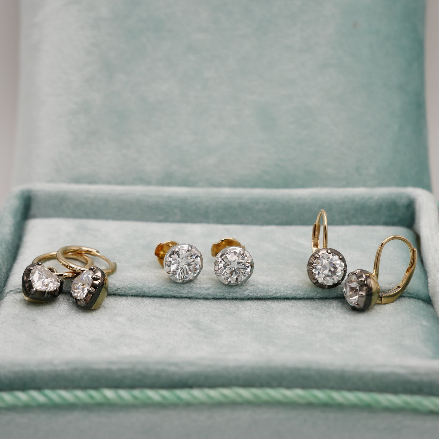 Georgian Victorian Round Lab Diamond Stud Earrings in White and Yellow Gold