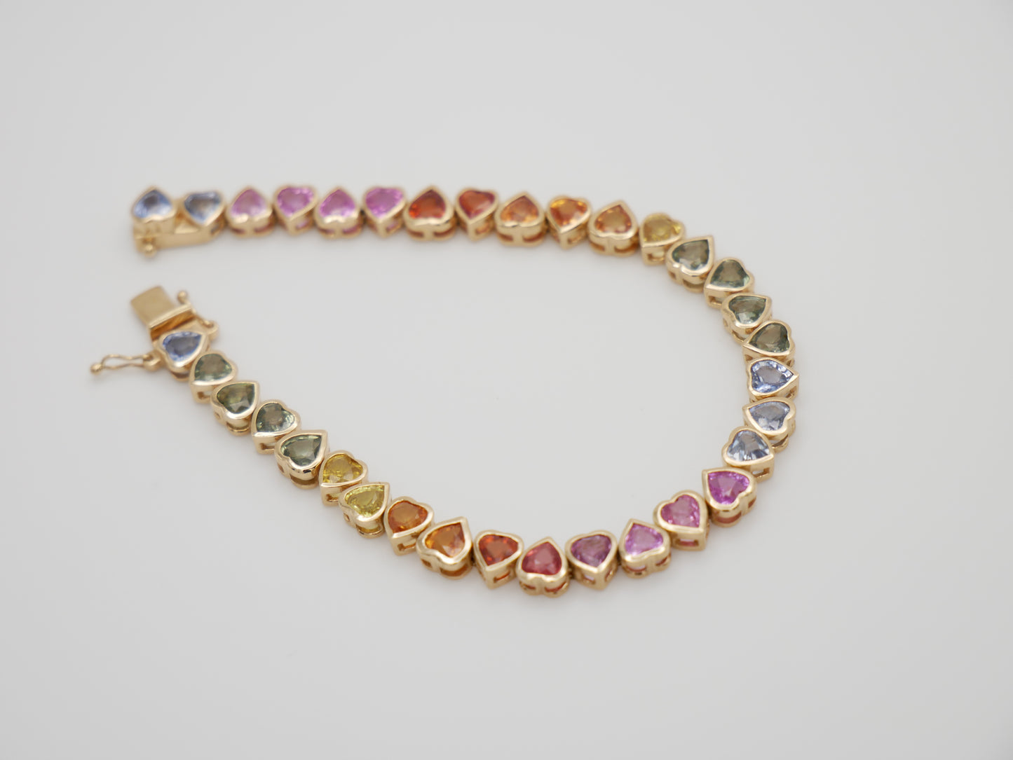 Solid Gold Multi Rainbow Heart Sapphire Tennis Bracelet