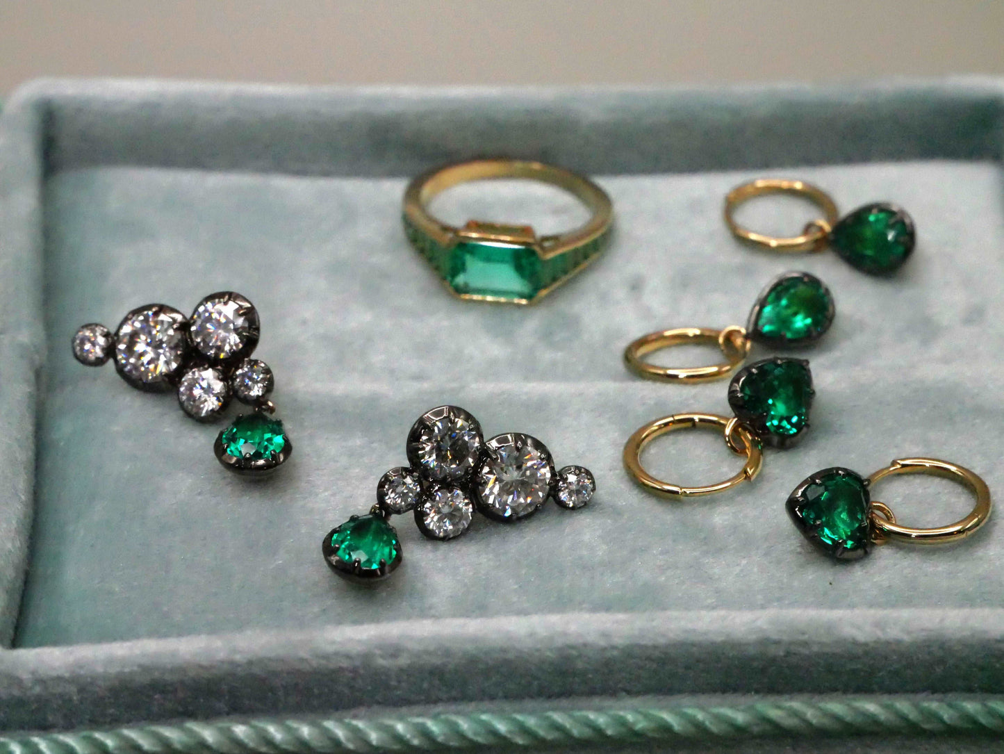 Experience elegance like never before with our stunning heart cut Lab Grown Emerald Hoop Earrings. This exquisite pair showcases two mesmerizing lab grown emeralds, each boasting an impressive weight of approximately 0.7 carat. Expertly set in Georgian cut-down collet settings, these emeralds exude a timeless charm.