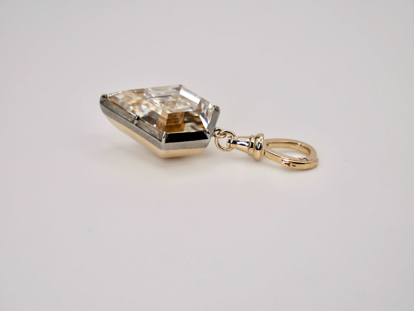 This Georgian Victorian Ball Chain Pendant is set with a 10 carat shield shaped moissanite in a Georgian cut-down collet setting and is designed to hang from any of the ball chain necklaces.