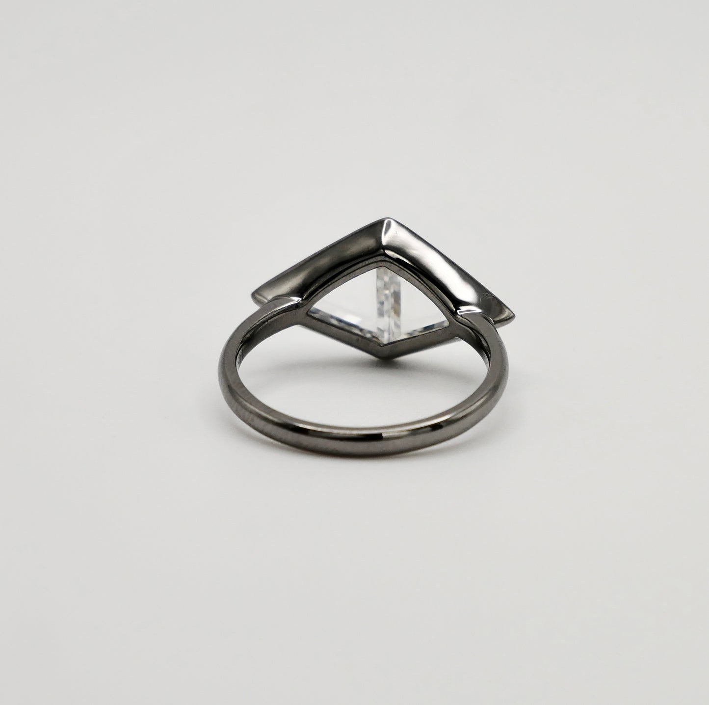 14K Blackened Gold, 6 Carat Triangle Portrait Cut Moissanite Bezel Ring