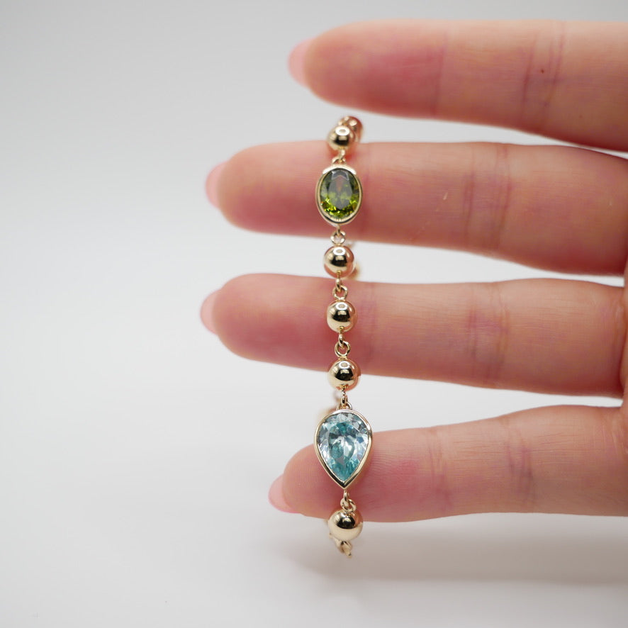 14K Yellow Gold Mixed Gemstone Ball Chain Bracelet