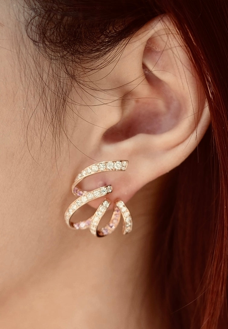 18K Diamond and Pink Sapphire Ribbon Loop Studs