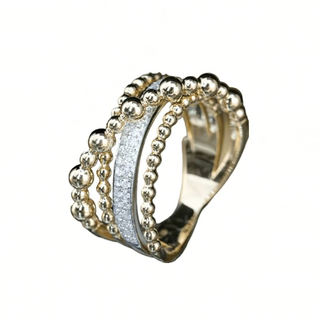 Introducing our mesmerizing Connected Balls Diamond Ring, a true testament to modern elegance and artistic flair. This unique piece features a captivating design with connected balls that dance around the finger, creating a dynamic and three-dimensional effect. The intertwining diamond bands crisscross one another, adding a luxurious touch of sparkle and sophistication. There are approximately 0.28 CTs of natural diamonds and the ring measures 10 mm in width.