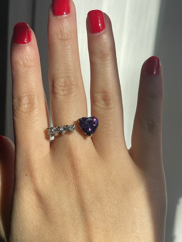 18K Gold Floating Heart Ring with Purple Sapphire, Diamonds, or Moissanites