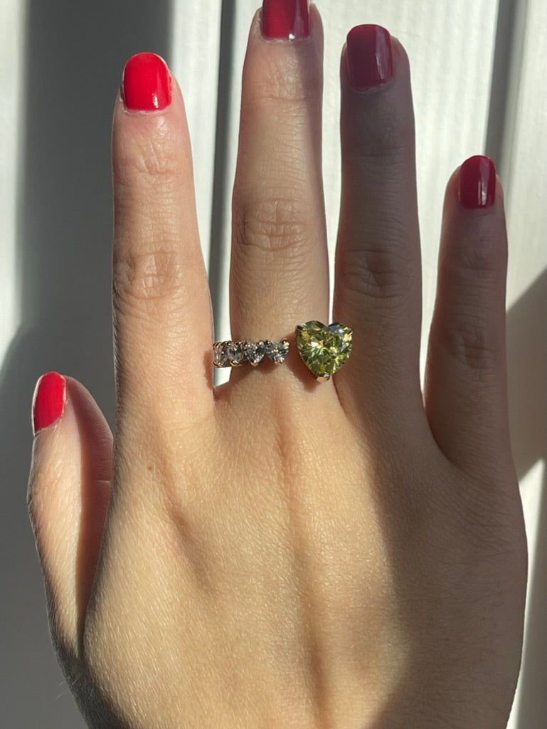 18K Gold Floating Heart Ring with Yellow Sapphire, Diamonds, or Moissanites