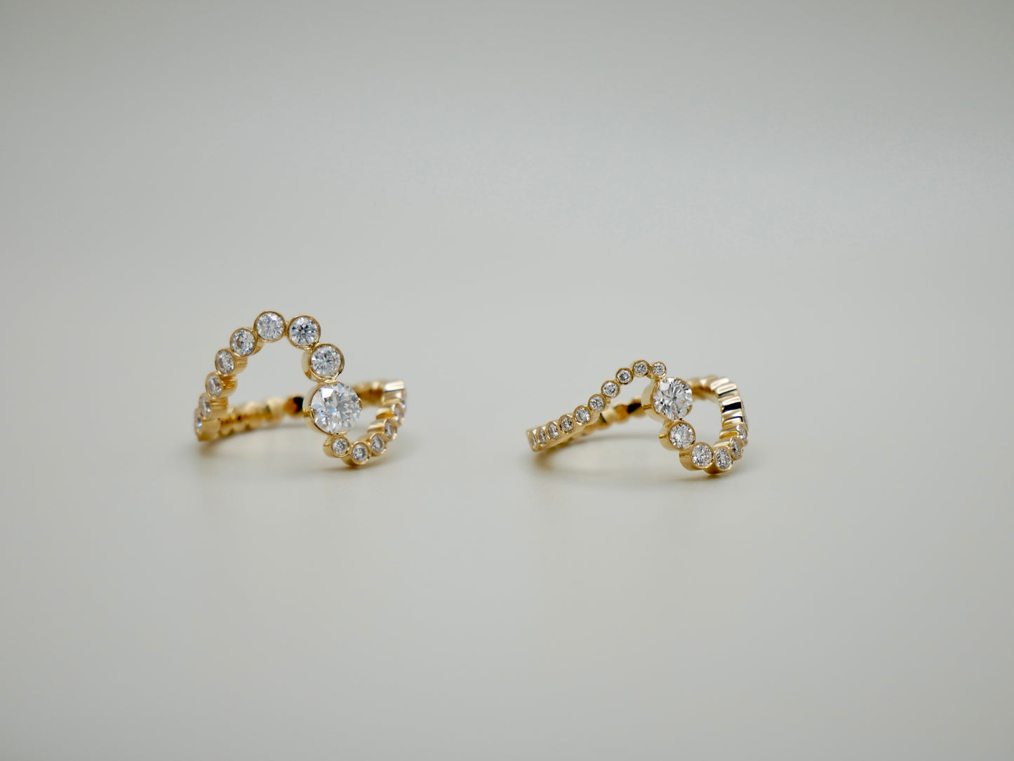 This exquisite ring elegantly mirrors the rhythmic dance of waves, with its intricate design and shimmering gemstones capturing the essence of the sea's allure. This ring features a row of lab diamonds or moissanites that curve around the finger. Total carat weight of 1.72 cts. Sophie Bille Brahe Grand Ensemble Ring