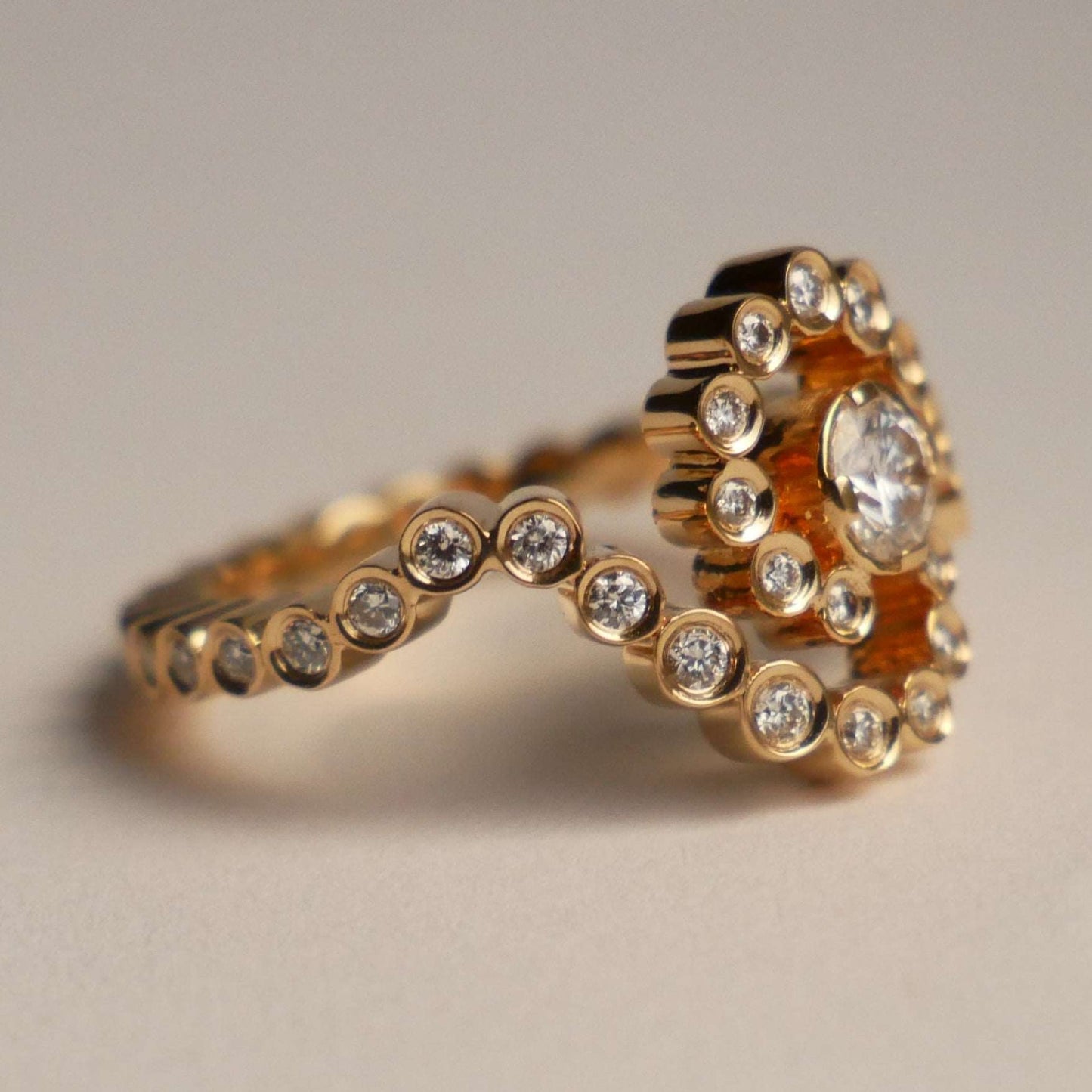 18K Wave Ocean Conch Shell Lab Moissanite or Diamond Ring