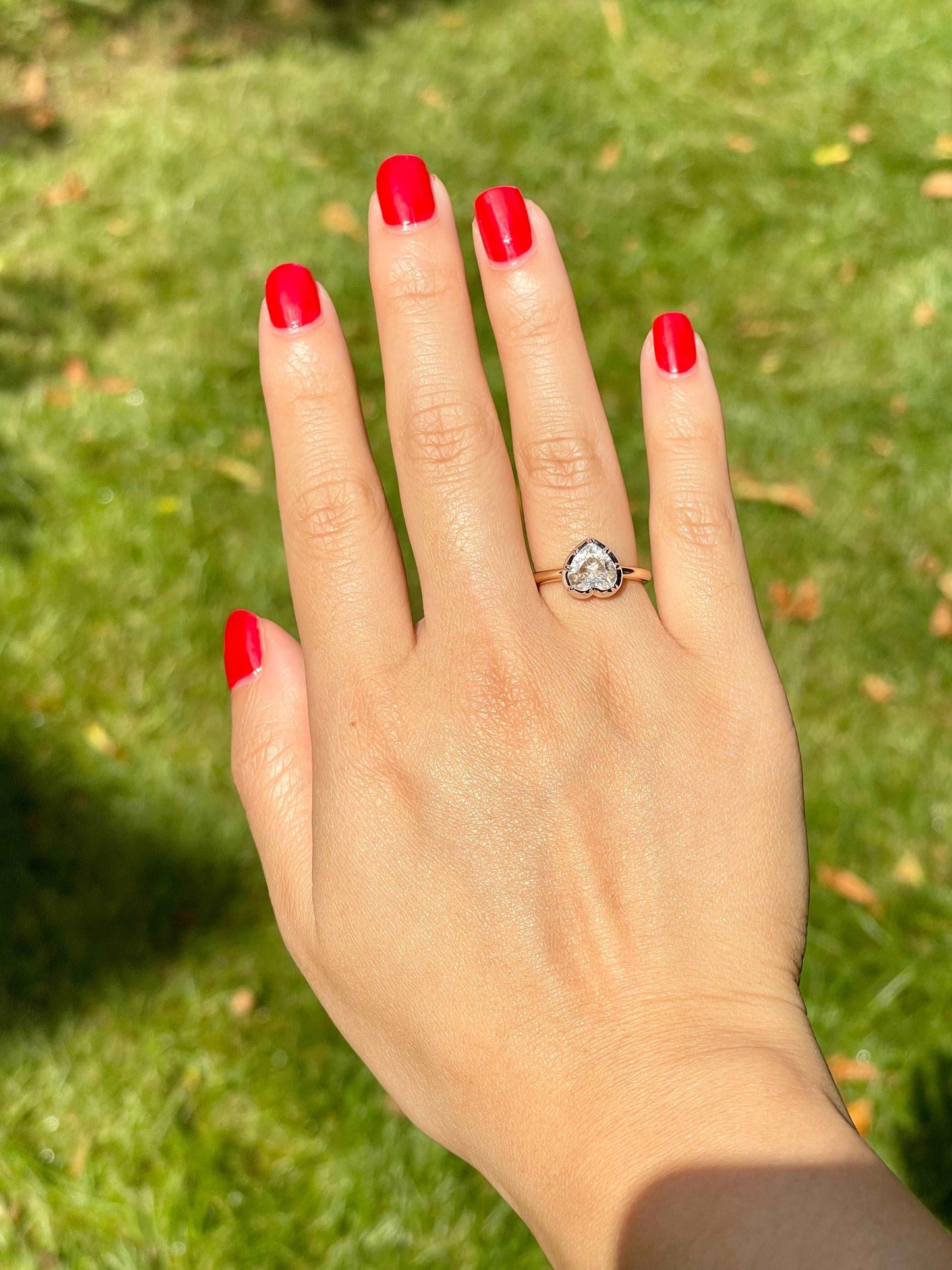 2 Carat Georgian Victorian Heart Shaped Moissanite and Gold Collet Button Back Ring
