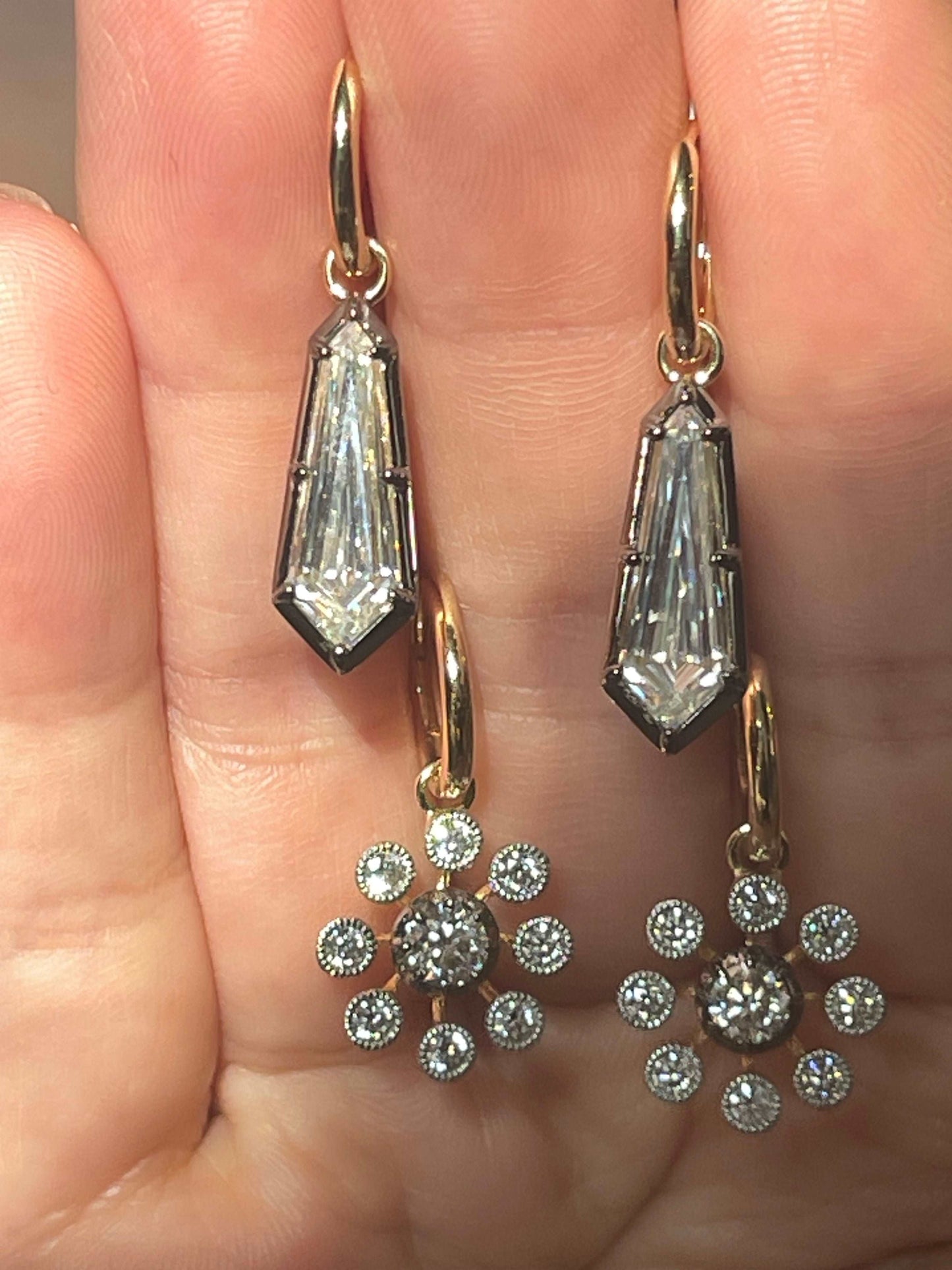 4 Ct Kite Georgian Victorian Moissanite Blackened 14K or 18K Gold Earrings