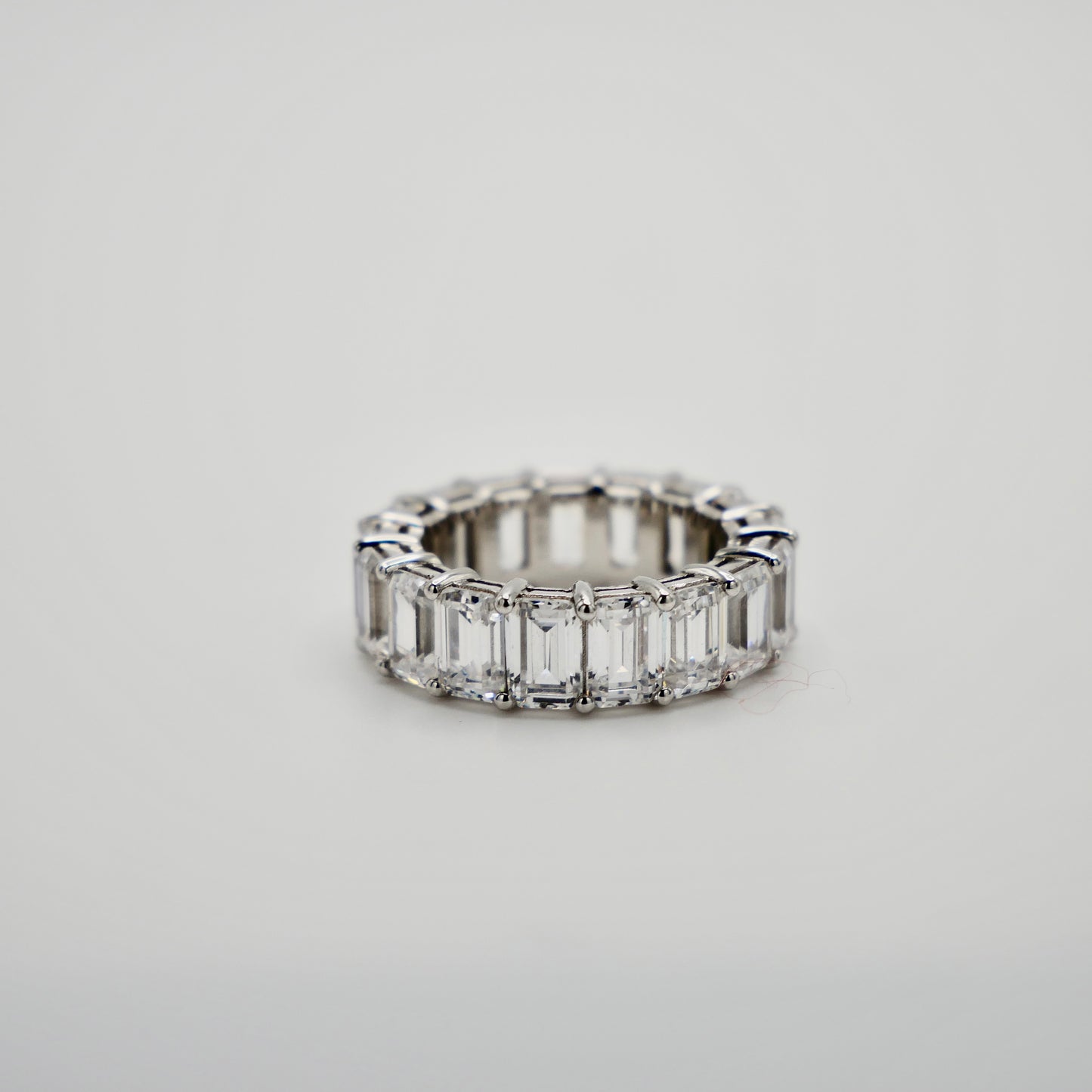 Our emerald-cut moissanite eternity band is meticulously crafted to symbolize everlasting love. Each moissanite gemstone is precision cut to maximize brilliance and clarity, echoing the depth of your commitment. Choose from luxurious 18K, 14K, or platinum white gold settings to match your personal style.