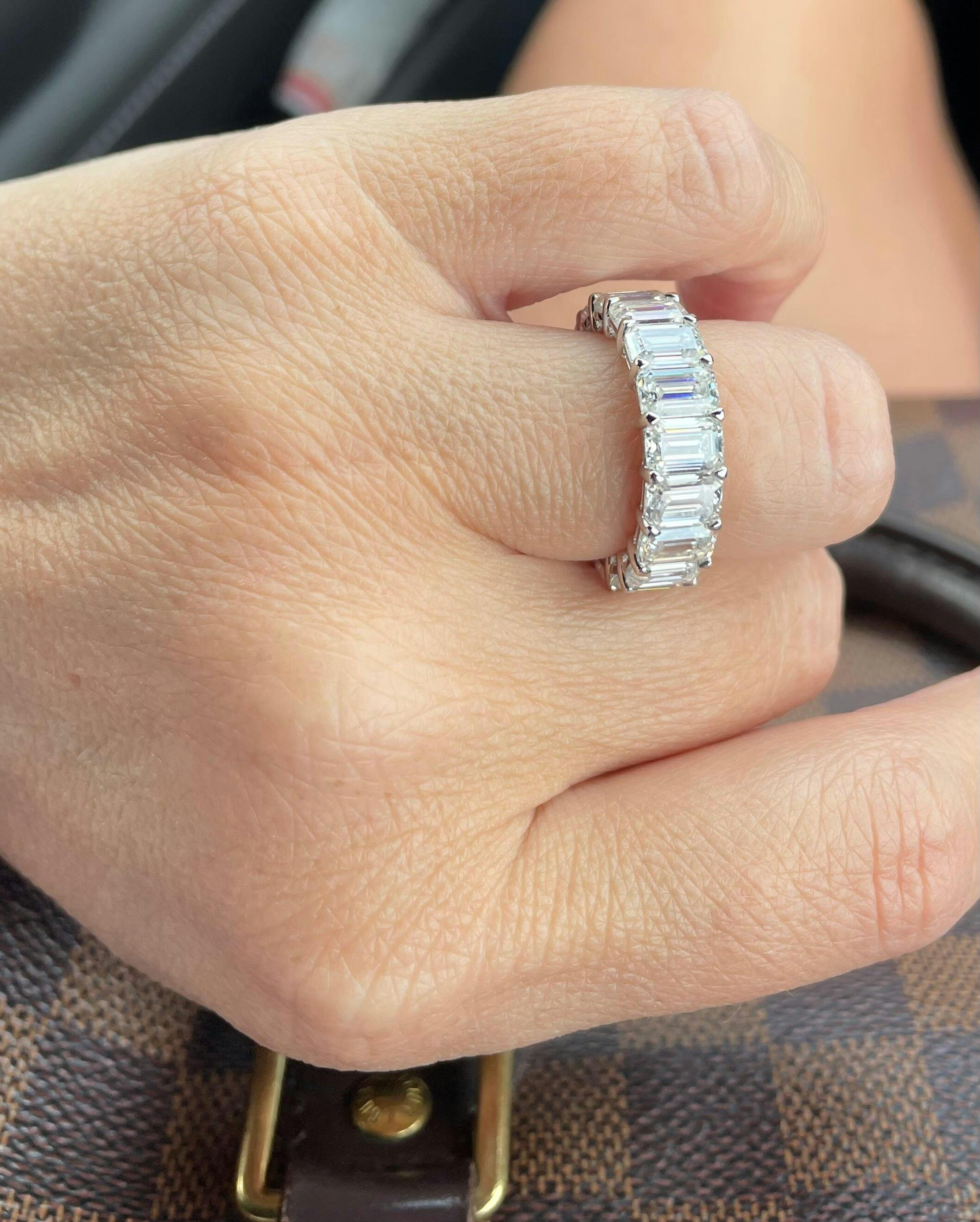 8 Ct Emerald Cut Moissanite Eternity Band in 14K, 18K or Platinum