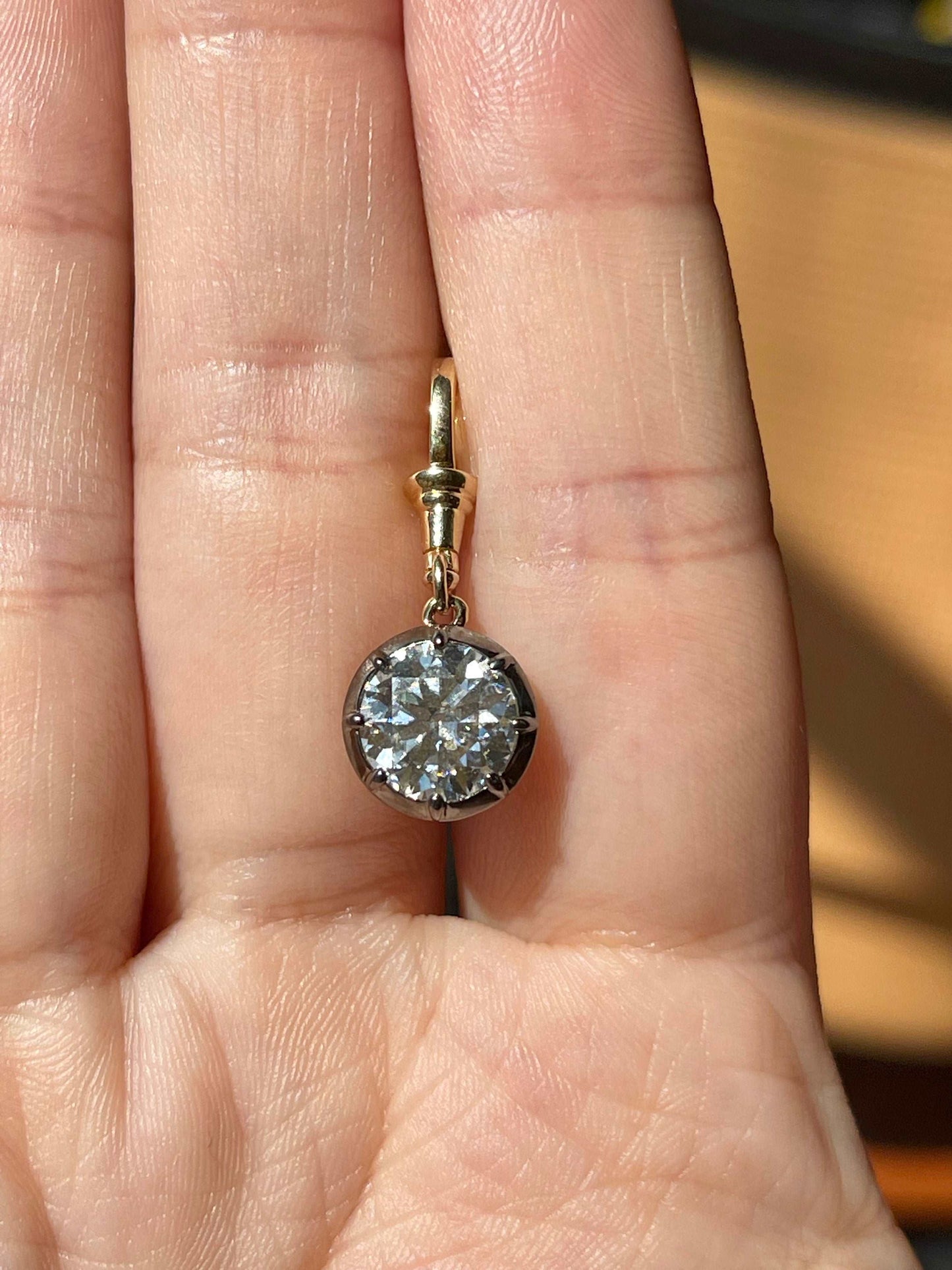 This Georgian Victorian Ball Chain Pendant is set with a 3.4 carat round moissanite in a Georgian cut-down collet setting and is designed to hang from any of the ball chain necklaces. This pendant is a tribute to the intricate designs of the past, showcasing a delicate pendant that exudes timeless charm. The pendant is handcrafted in 14k gold, which is designed with versatility in mind.