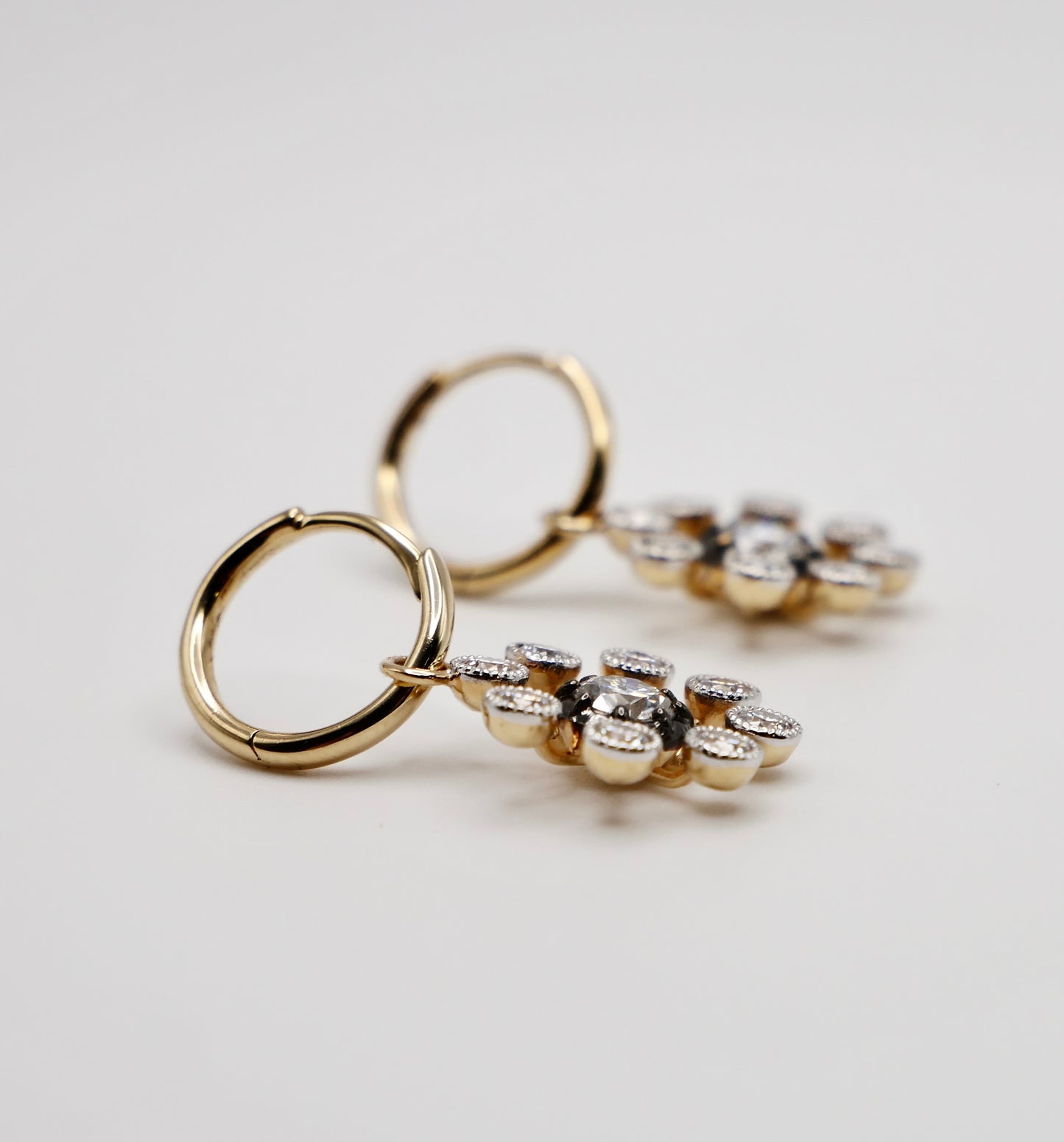 Moissanite and Blackened Gold Dandelion Hoop Earrings
