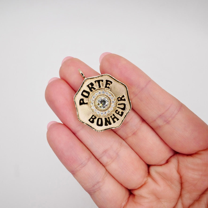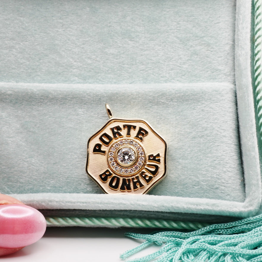 Porte Bonheur Double-Sided Lucky Charm Pendant in 14K Gold with Lab Diamonds
