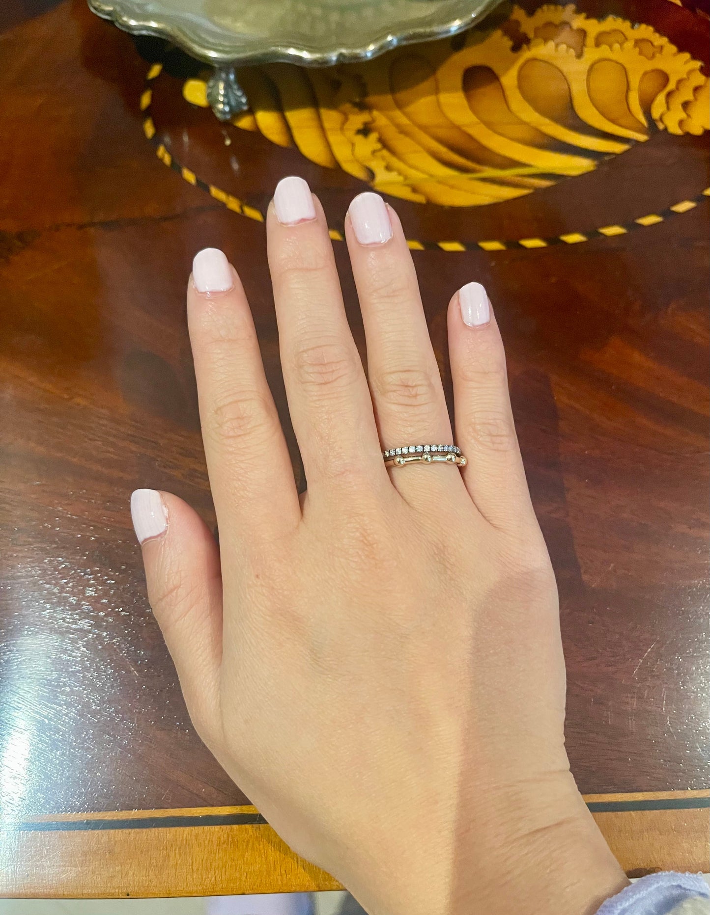 This ring set features our delicate gold ring with sphere balls and our thin micro pave blackened gold ring. The former boasts meticulously spaced sphere balls for a unique design, while the latter showcases clear and intricate detailing, perfect for stacking or wearing solo. Crafted with precision in your choice of 14K or 18K gold, these rings offer versatility and style to elevate any ensemble.